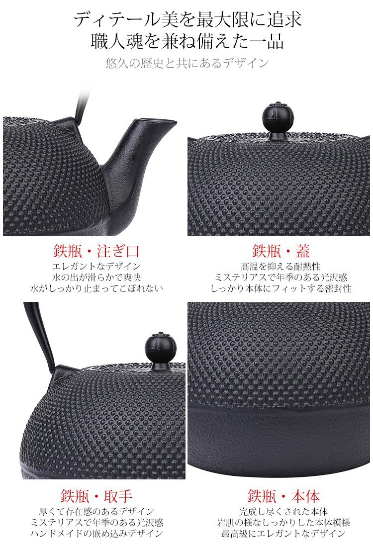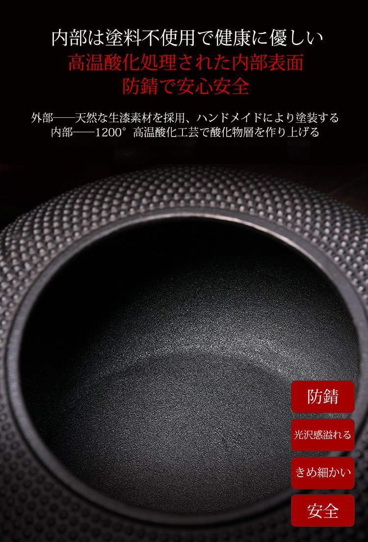 【手作り鉄瓶】 厳選された高品質の砂鉄を原料に使用、内部は塗料不使用で健康に優しい、鉄分補給